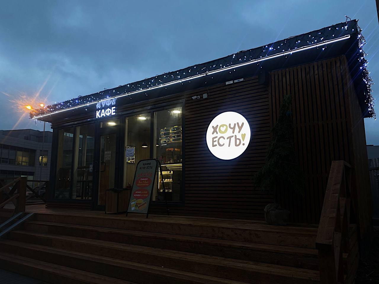 Совет: выбирайте монтаж без рам — вывеска будет выглядеть как парящая в воздухе.