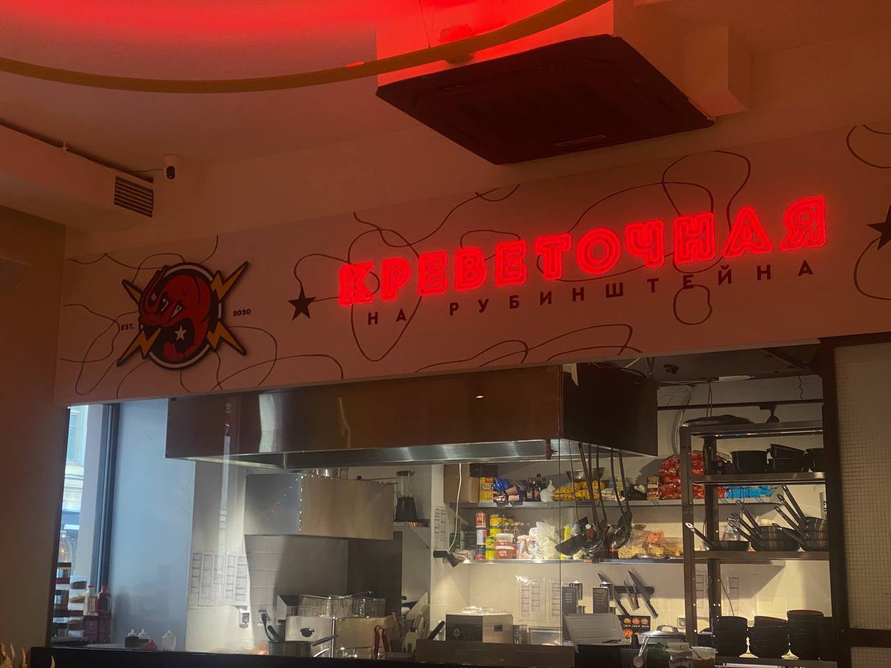 Вывески внутри работают не меньше, чем фасадные. Это фотозоны, неоновые цитаты, логотипы за стойкой. Всё это запускает сарафанное радио — гости фотографируются и делятся впечатлениями.